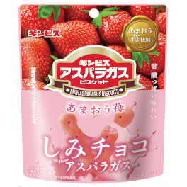 - ビスケットの中までチョコをしみ込ませる「含浸製法」で、アスパラガスビスケットにいちごチョコをしみ込ませました。