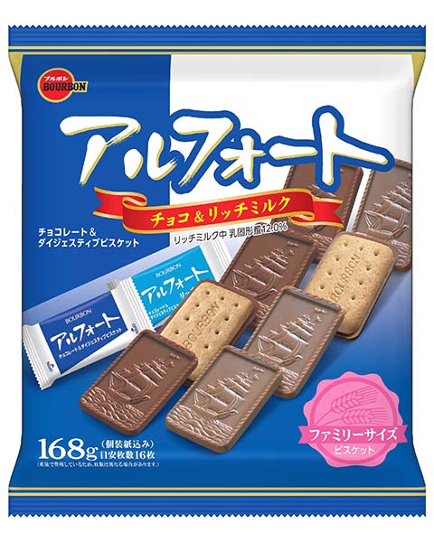 <リッチミルク>小麦粉(国内製造)、砂糖、植物油脂、全粉乳、ショートニング、カカオマス、小麦全粒粉、小麦ふすま、ココアバター、キャラメル粉末(乳成分を含む)、食塩、脱脂小麦胚芽/膨脹剤、乳化剤(大豆由来)、香料(乳由来)