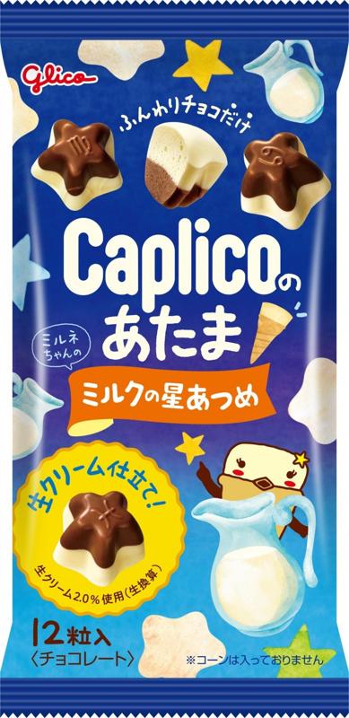 カプリコのエアインチョコ部分だけがトレーに入った、星形のチョコレートです。ミルクとミルクチョコレートのおいしい組み合わせです。チョコレートの粒がスタートからゴールまで線でつながっていて、順番に食べすすめると、トレーの底の色々なキャラクターと出会えます。