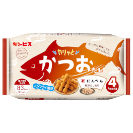 カリッと食感が特徴のスナック菓子に出汁の老舗「にんべん」の液体鰹節だしを使用した期間限定商品。