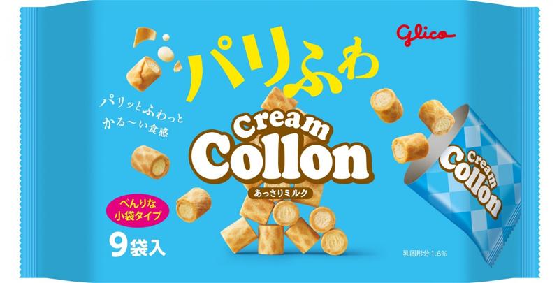 パリッと食感のよいワッフルで、ふわっふわで軽い甘さのクリームをくるっと巻きました。 食感と味わいがクセになる一口サイズのプチスイーツです。 味はかるいおいしさの<あっさりミルク>です。