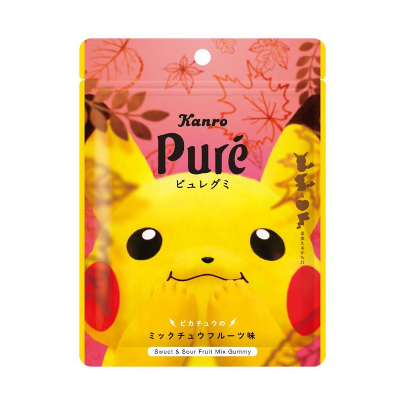 カンロオリジナルフレーバーの「ミックチュウフルーツ味」とピカチュウ型のグミ。