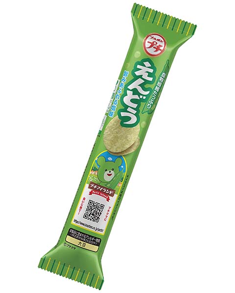 えんどうまめ粉末(国内製造)、植物油脂、乾燥ポテト、コーングリッツ、食塩、砂糖、昆布エキス調味料、食物繊維(イヌリン)、かつお風味調味料、デキストリン、酵母エキス粉末、かつおエキス調味料、昆布エキス粉末/トレハロース、加工デンプン、調味料(アミノ酸等)、乳化剤(大豆を含む)、酸化防止剤(ビタミンE、ビタミンC)、香料、微粒酸化ケイ素、増粘剤(グァーガム)栄養成分表示