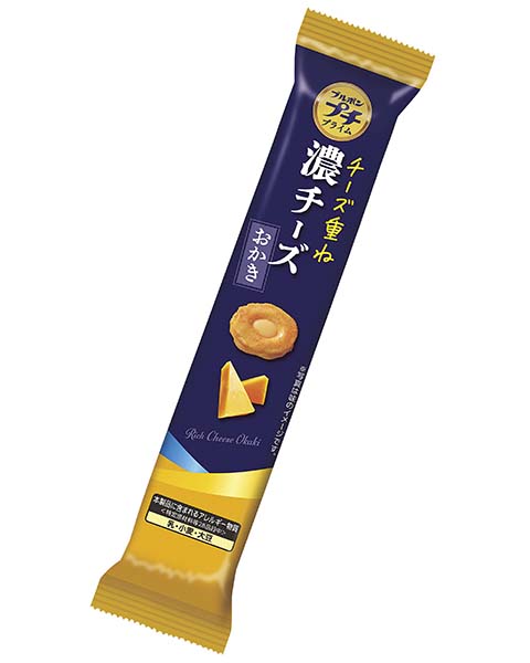 おかき生地をチーズ味に仕上げ、さらに濃厚なチーズクリームをサンドしたチーズづくしの贅沢なおかきです。 生地からクリームまでチーズを重ねた満足感