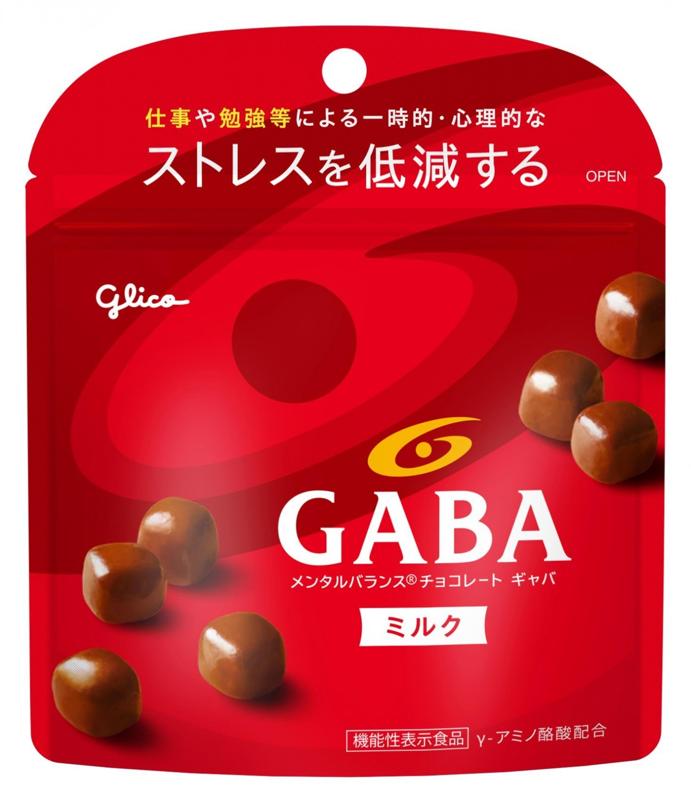仕事や勉強等による一時的・心理的なストレスを低減する機能が報告されているGABA(γ-アミノ酪酸)を配合しています。やさしいミルクの味わいが広がる一口サイズのチョコレートです。パウチ形態でファスナー付きなので持ち運びにも便利です。 機能性表示食品です。