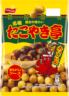 1981年にフリトレーから『たこやきくん』として誕生したロングセラー商品。 懐かしさ感じるレトロなパッケージデザインに、食べやすいふんわりサクッとした軽い食感に、昔の屋台で出てきたような濃厚なこだわりのソース味のコーンスナックです。