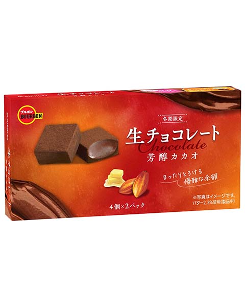 砂糖(国内製造、タイ製造)、カカオマス、植物油脂、クリーム(乳成分を含む)、全粉乳、バター、洋酒、ココアバター、ココアパウダー/乳化剤(大豆由来)、グリセリン、糊料(ゼラチン)、香料栄養成分表示