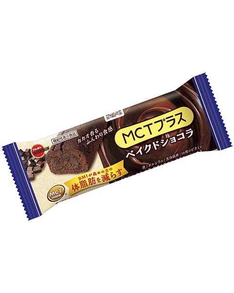 MCT(中鎖脂肪酸油)を使用したバータイプの機能性表示食品です。MCTに含まれる中鎖脂肪酸(オクタン酸、デカン酸)はBMIが高めの方の体脂肪を減らすことが報告されています。 生地にチョコレートとチョコチップを練りこみふんわり食感に仕上げました。鉄や食物繊維などバランス良く栄養素を摂取できます。